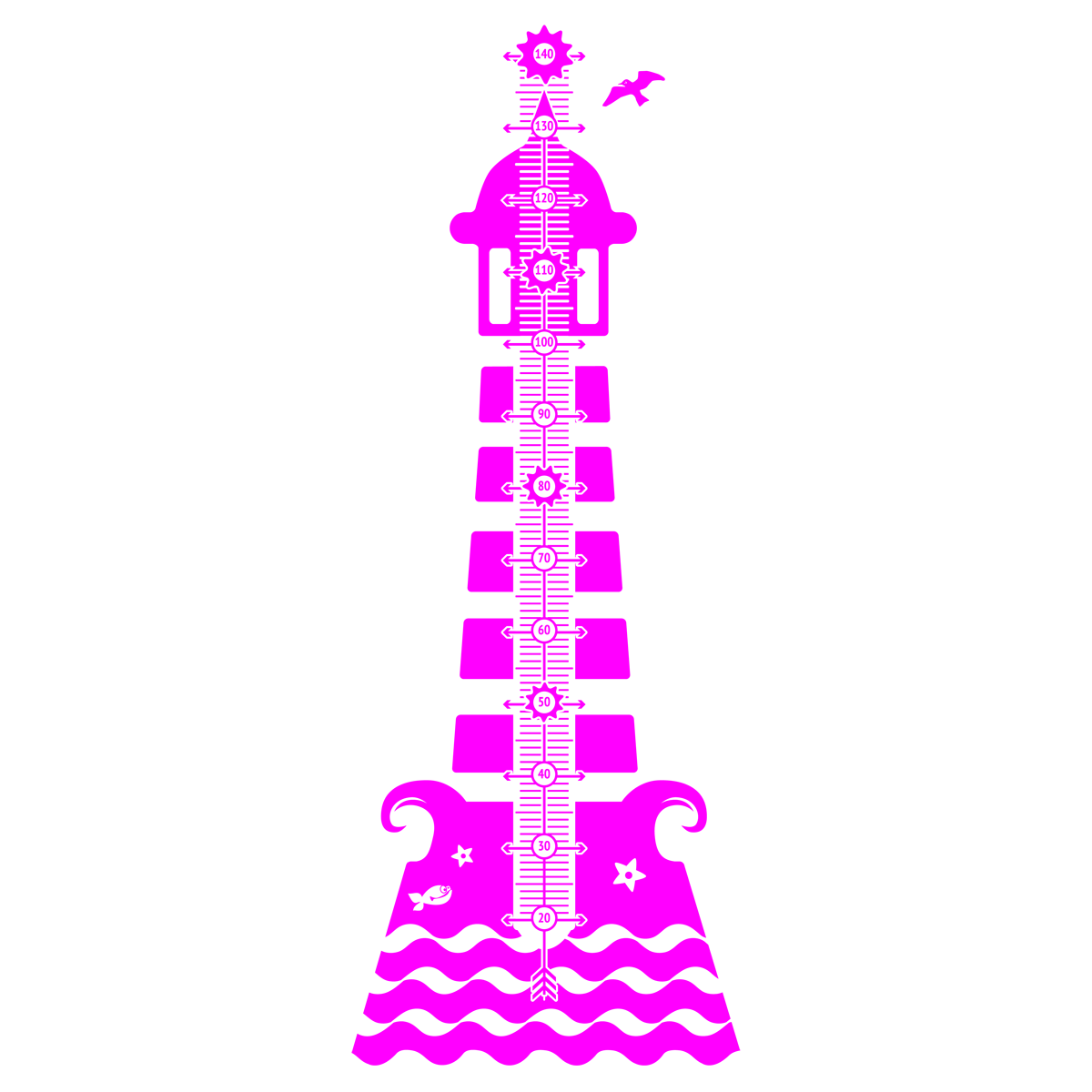 Wandaufkleber Messlatte Leuchtturm mit vielen Details. Dieser schöne Wandsticker mit Leuchtturm-Motiv ist nicht nur ein Hingucker, sondern ein praktischer Wegbegleiter für alle Kleinen, die ganz groß werden wollen. Die Messlatte beginnt bei 20 cm und kann bis zur Größe 140 cm genutzt werden. Eine tolle Wanddekoration für jedes Kinderzimmer, aber auch für Ihr Badezimmer !